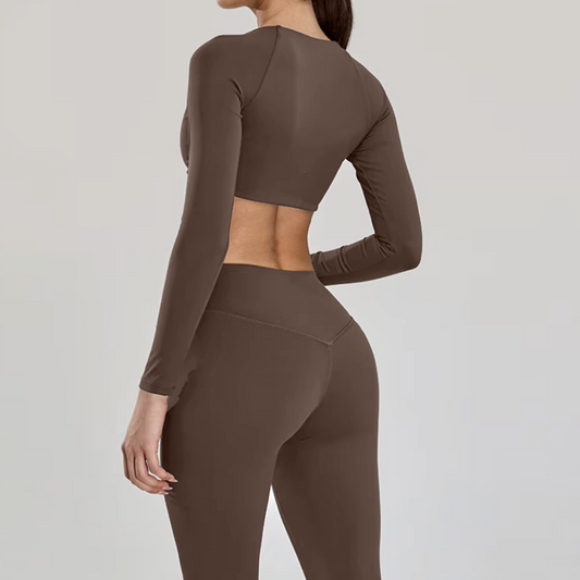 Silky top crop long sleeve earth