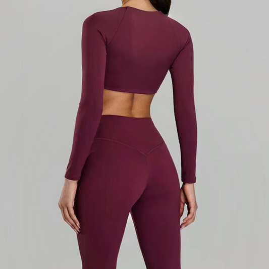 Silky top crop long sleeve garnet